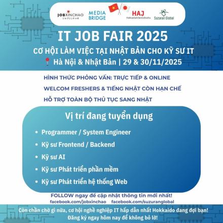 道外Thông báo tới mọi người ở Việt Nam(ベトナムの皆さんへのお知らせ)20251117くらしごとを運営する北海道アルバイト情報社がベトナムにて設立した「Suzuran Global」よりお知らせです! 🚀 IT JOB FAIR 2025 - ITエンジニアのための日本で働くチャンス…